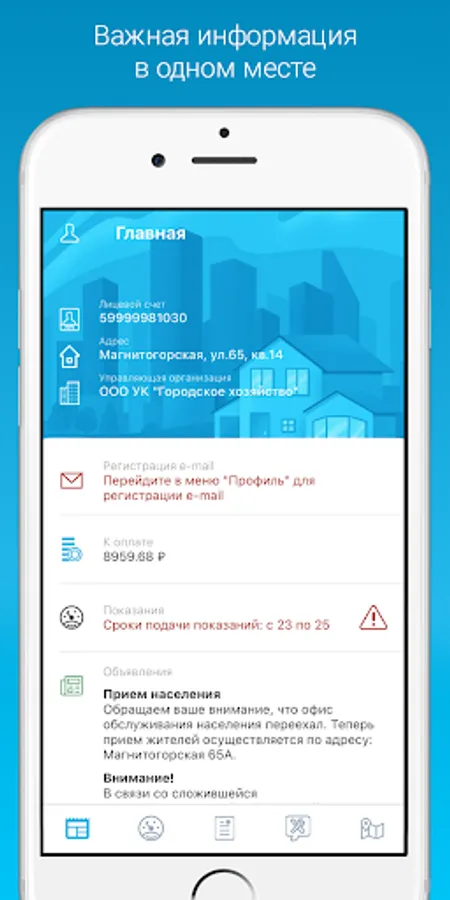 Payment of housing services: Choose a convenient method and place of payment or pay directly from the application. After payment, it is possible to download a receipt for payment of utility bills.