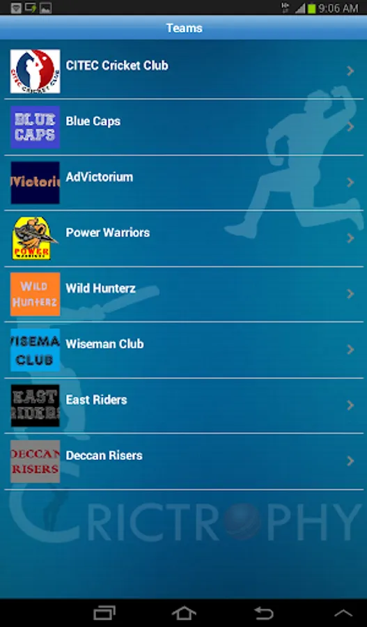 Using this you can access your cricket leagues/Local tournament schedules, score card, teams, news, photos, team points, videos and rules. You can also search other leagues available in crictrophy.com and see their details.