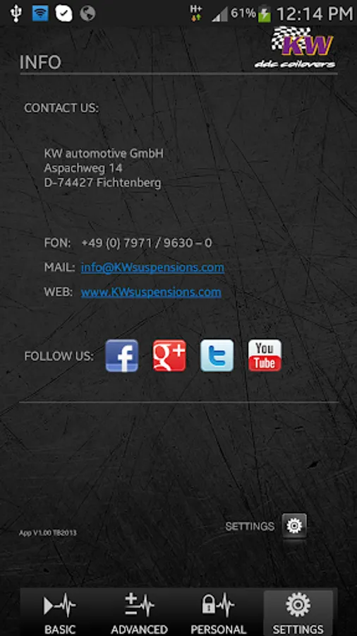 This app enables your Android device to program, save and recall different damper setups on your DDC coilover kit.