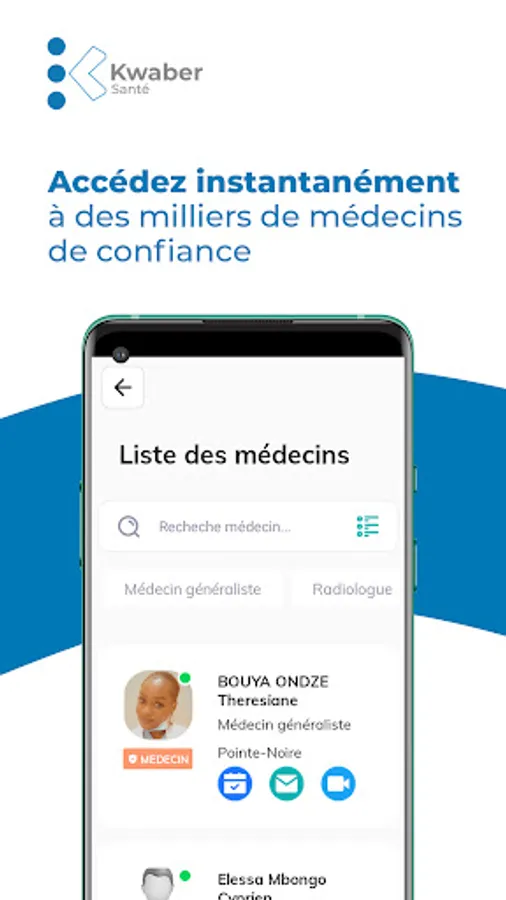 Kwaber health is a platform that offers the possibility of putting a patient in direct contact with health personnel residing in Congo-Brazzaville.