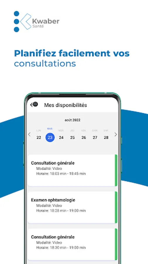Kwaber health doctor is an online consultation platform. It offers the possibility of putting a patient in direct contact with health personnel.