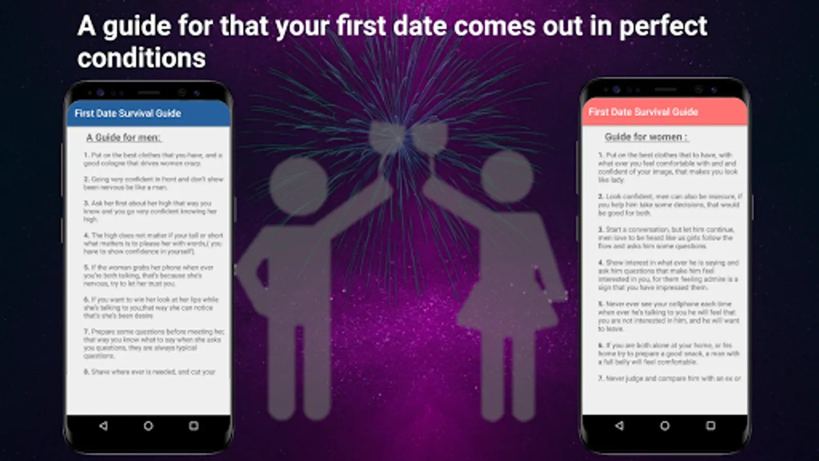 Compare your height with the person you want to see and calculate your weight to find out if you are in your ideal weight, this app is unique, it includes a guide to not make the typical mistakes when knowing that person, this allows your first date to come out in perfect conditions .