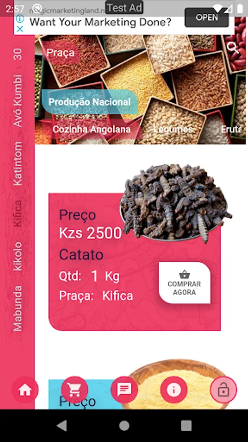 we can now go to the market on the mobile phone! The square application is used to shop in parallel markets by mobile phone and receive at home. In it we have access to national products, sold in the market of 30, Avó Kumbi, Katintom, Kifica, kikolo, Mabunda and Madeira.
