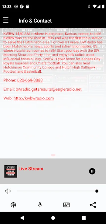 KWBW Radio, Hutchinson, KS Screenshots