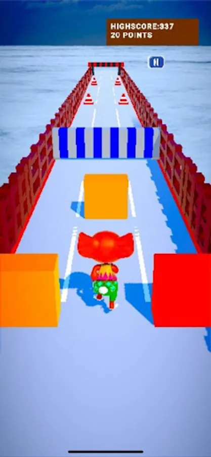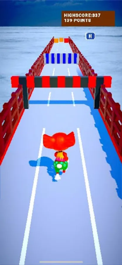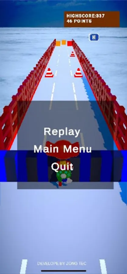 The score is determined by the duration of your gameplay. The longer you survive, the faster the game becomes. Stay vigilant to prevent the player from colliding or crashing into obstacles.