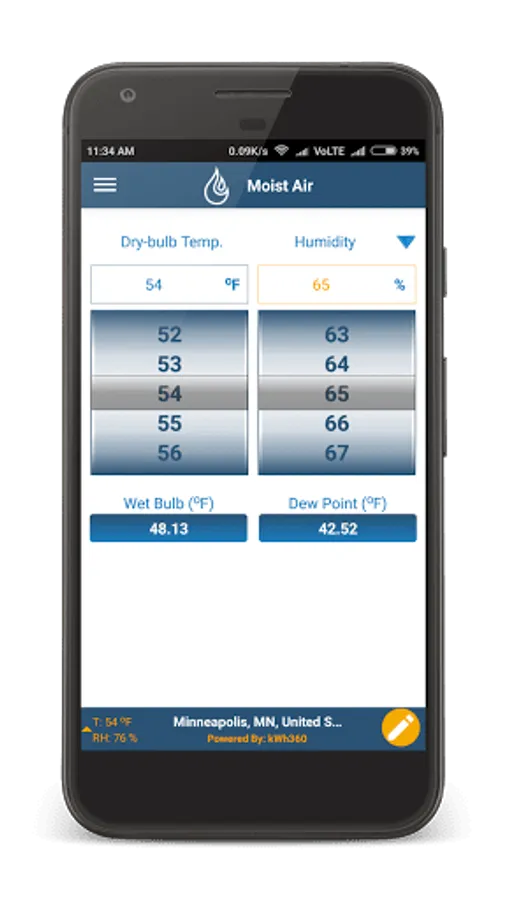 The app also provides quick calculations for moist air, set temperature and humidity, and can do unit conversions easily.