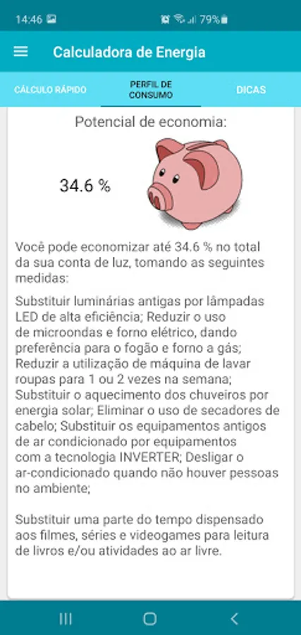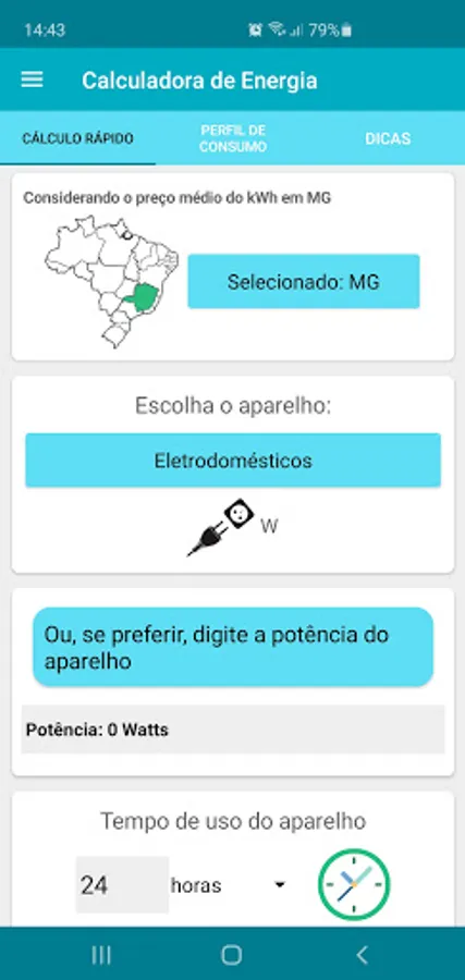 Time for you to dodge the water crisis! Using Aneel's database, this App calculates the average price of kWh (kilowatt-hour) practiced in your State. With this it calculates the energy consumption as a function of the equipment's power, showing the value of the kilowatt-hour in money.