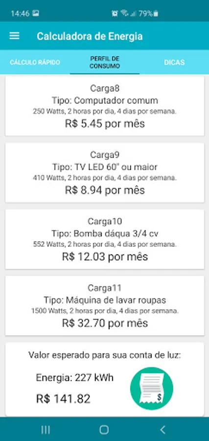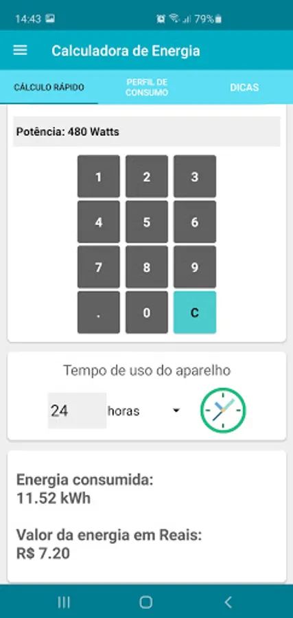 Make quick calculations on consumption and cost in R$ for 1 device, or;