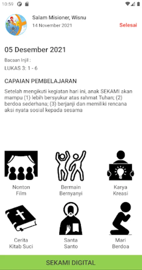 Digi SEKAMI is a family-based Catholic children's faith mentoring application that contains materials ranging from watching movies, games and singing activities, bible stories, creative works, stories of saints and saints, let's pray, and quizzes.