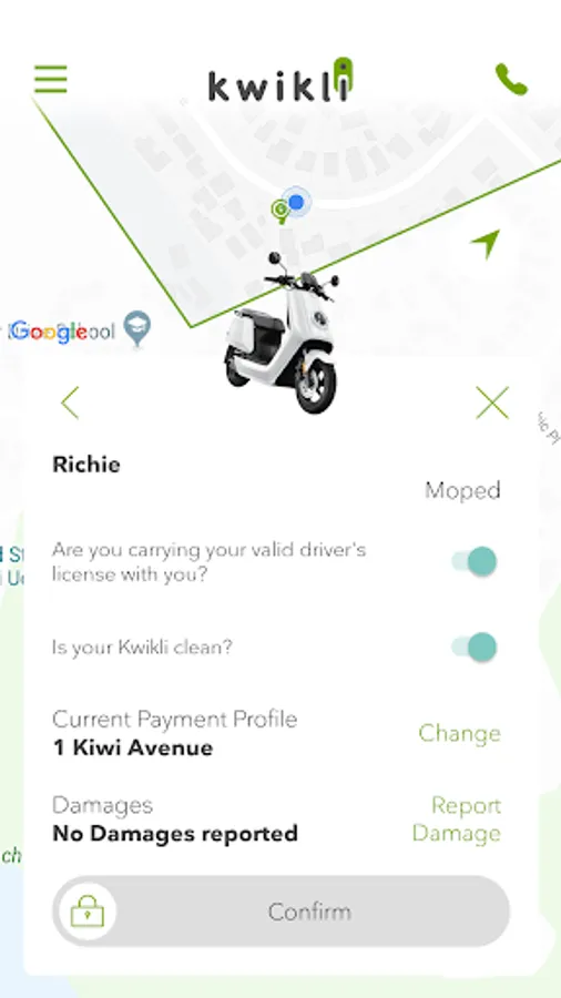 Use your app to find, reserve and start a Kwikli. Sign up and get rolling!