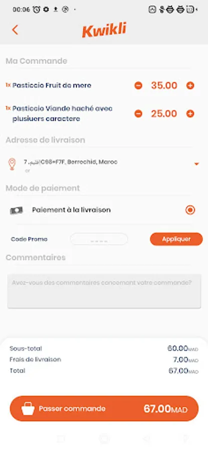 Want a good pizza, tacos, chawahrma, burger or even a Moroccan dish, Kwikli allows you to order the best dishes at the best price.