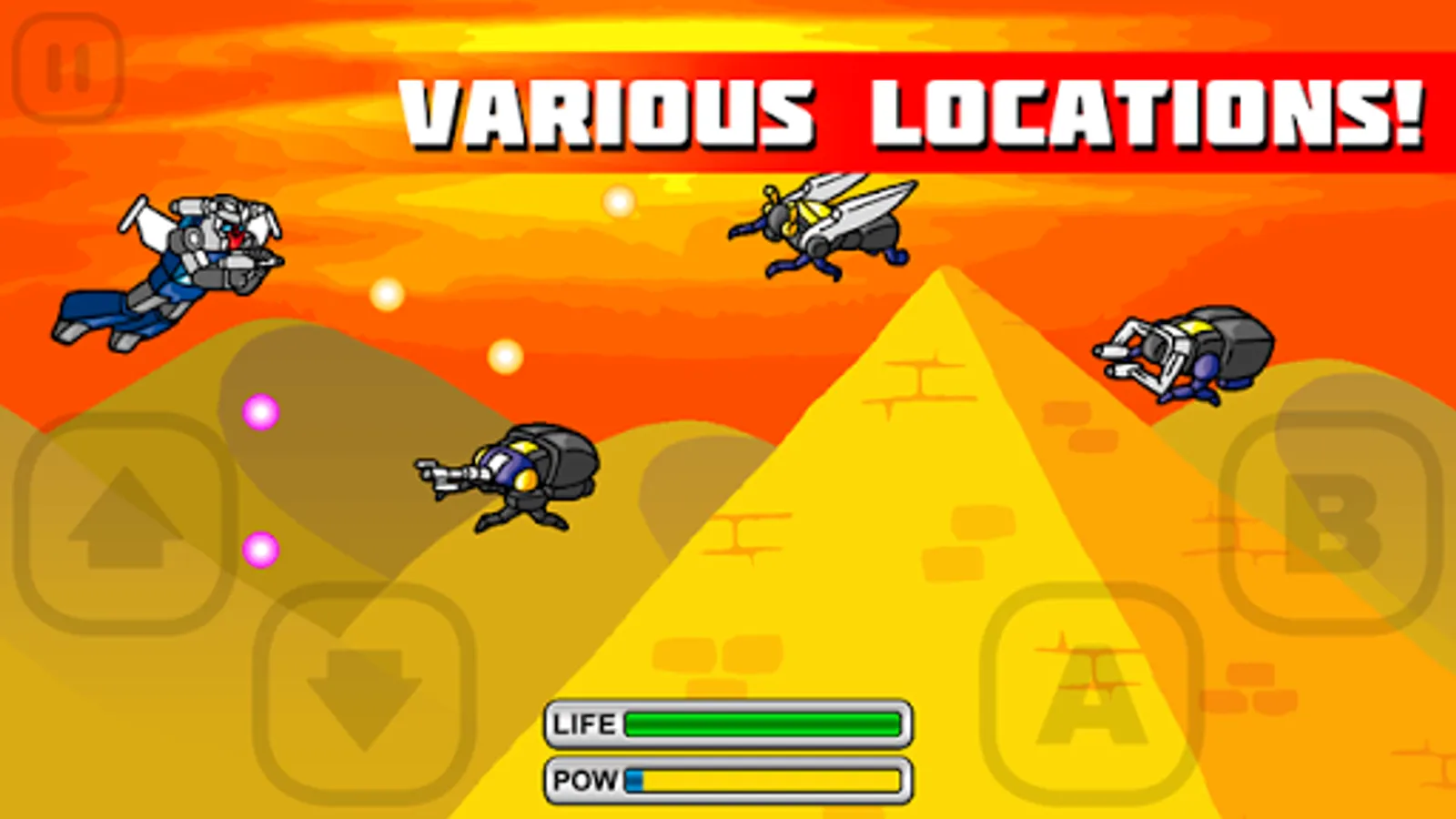 Are you ready for new challenges? Play the side-story from Robots Warfare III with new robots and missions. For the very first time of the series, this is pure shoot 'em up craziness! Time to blast your enemies out of the skies! Move like a robot, battle like a robot, BE THE ROBOT!