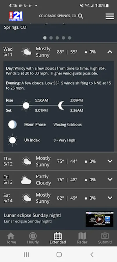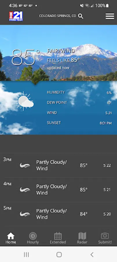 Never let the weather catch you by surprise again. The trusted weather experts at FOX21 Weather deliver Colorado Springs & Pueblo's most accurate hour-by-hour forecast for the next day and for the week ahead. Unlike other weather apps, you'll get a local forecast that is customized for you.
