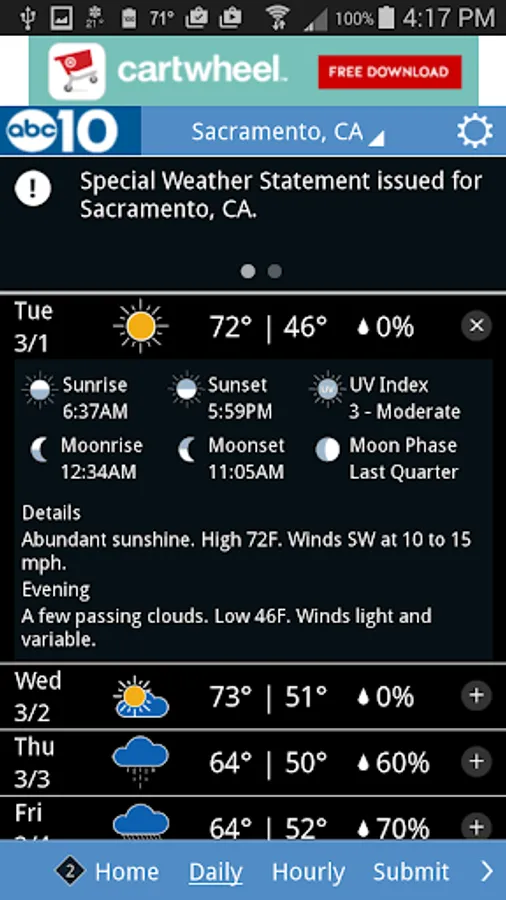 News10’s Android weather app makes viewing and getting the latest Sacramento, Modesto, Stockton and Tahoe weather forecasts easy.