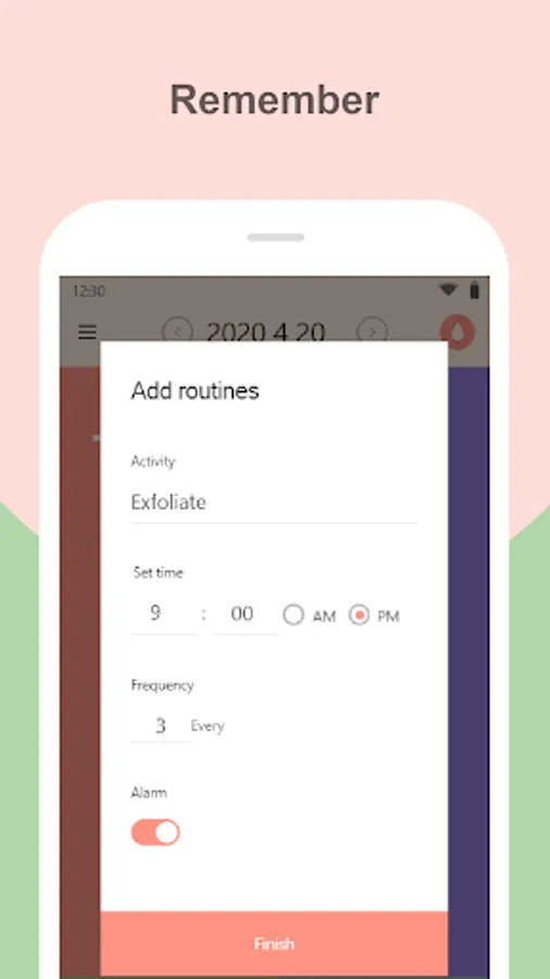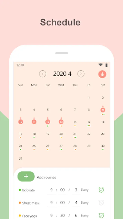 ✔If you want to delete your routine in the calendar, long- click the colored dot