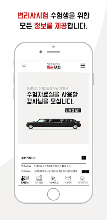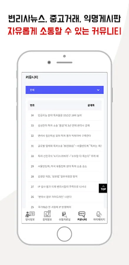 -Community: Provides a space to freely share information such as secondhand transactions between examinees, patent attorney news, study recruitment, and anonymous bulletin board.