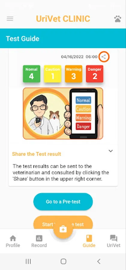 - You can send and share the test result to your veterinarian via SNS, e-mail on the app and consult about it to prevent dangerous self-diagnosis.