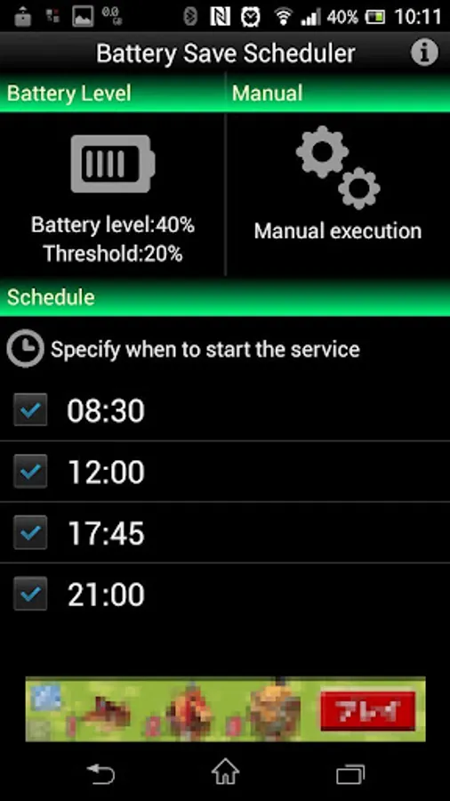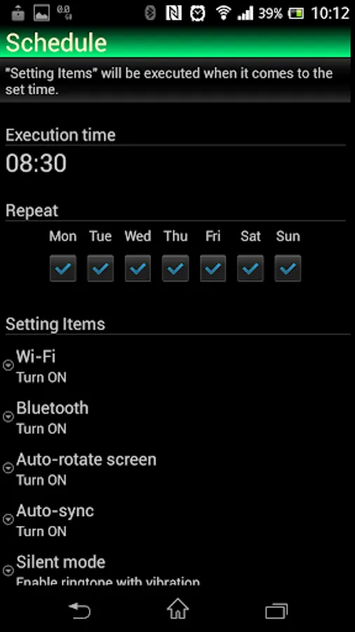 You can at the time you specified to execute arbitrary settings automatically related to the power saving of the terminal body.