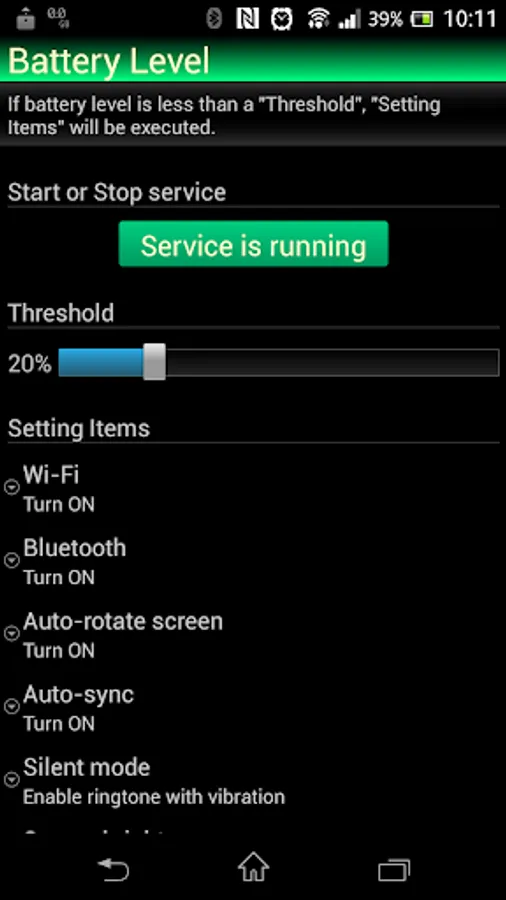 - When the battery level falls below a threshold (percent).