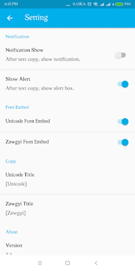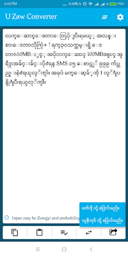 And then you should open 'Unicode Alert' or 'Zawgyi Alert' or 'Unicode and Zawgyi Alert'.