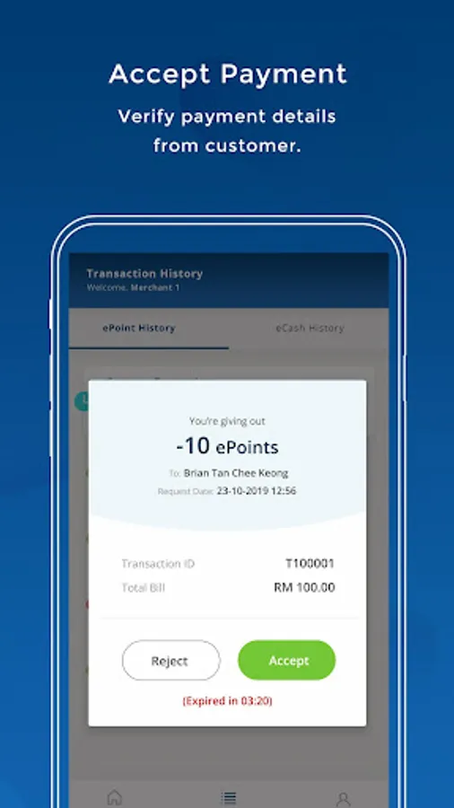 *Merchant must own sufficient ePoint in order to accept payments from customers.