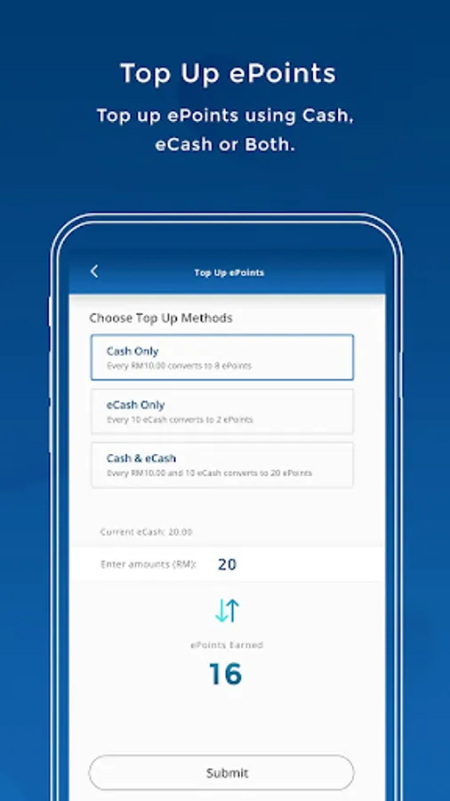 Running out of ePoints? Top up now using your accumulated eCash, cash or even both!