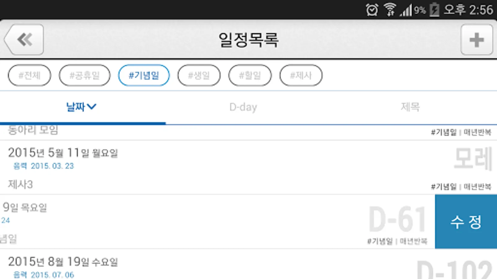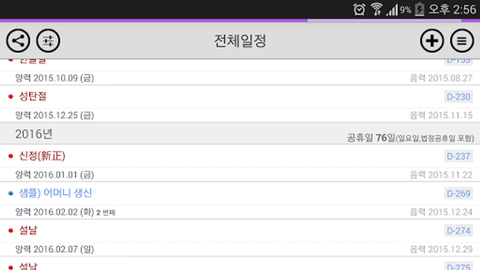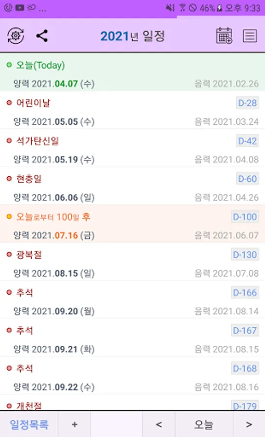 10. Provide automatically calculated D-day, provide past/upcoming schedule