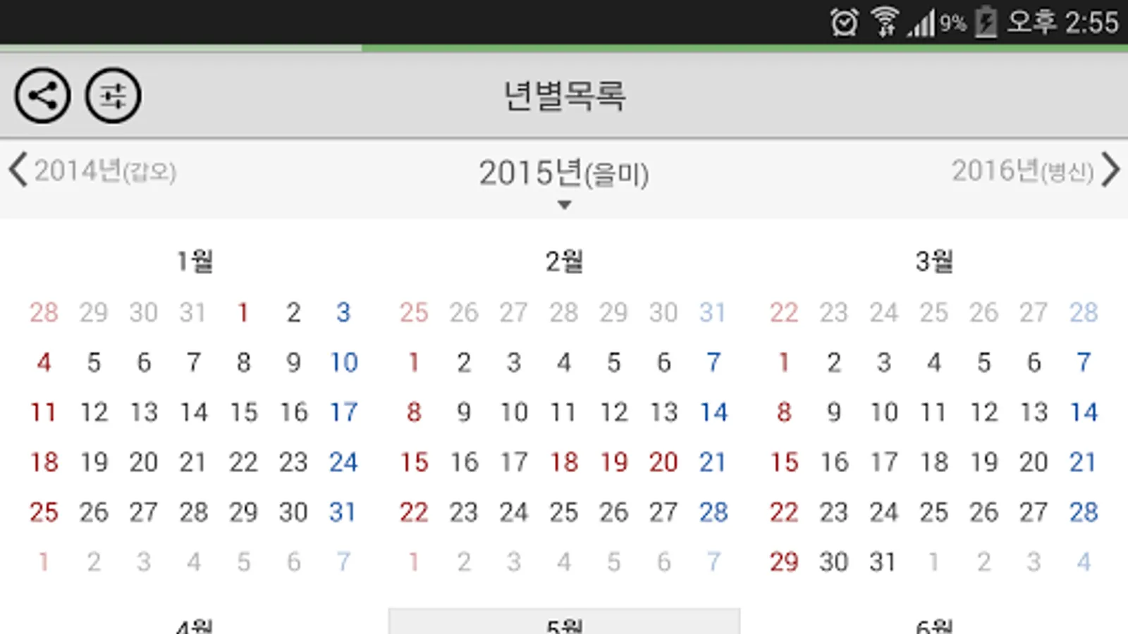 1. Gregorian, lunar, leap month, yearly, monthly, daily calendar provided