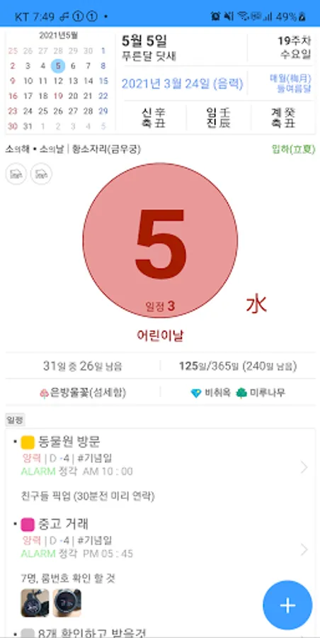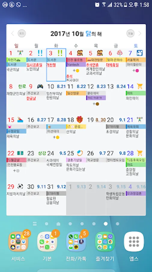 5. Calendar, daily detailed information widget, day, day, 365 day widget support