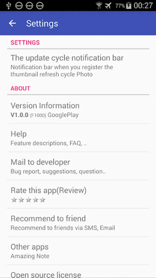 'Settings -> About -> Mail to developer'.
