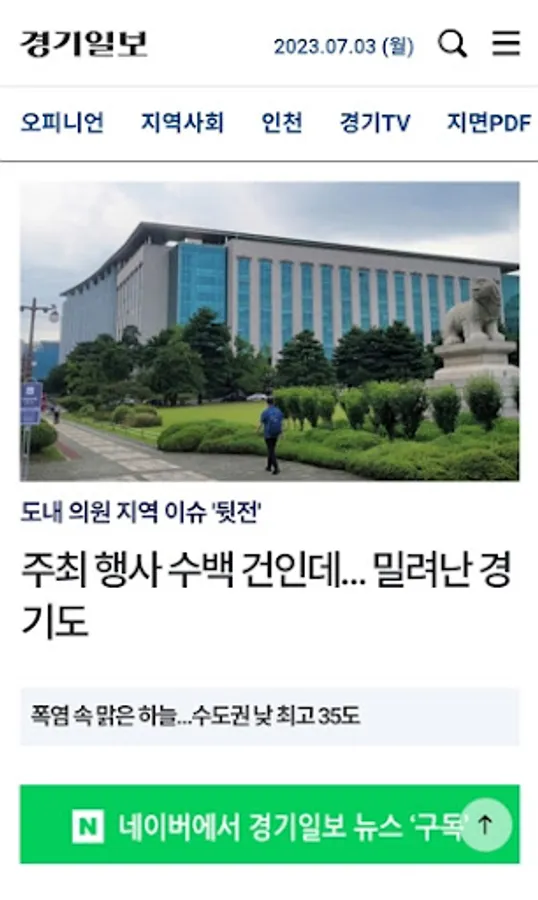 You can access the latest news 24 hours a day through the APP service of Gyeonggi Ilbo, the leading newspaper in Gyeonggi and Incheon. News in various fields such as politics, economy, society, culture, and sports are delivered to your hand as quickly as possible.