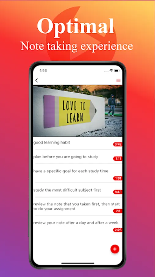The user-friendly interface in this skills development app allows you to take note fluently.