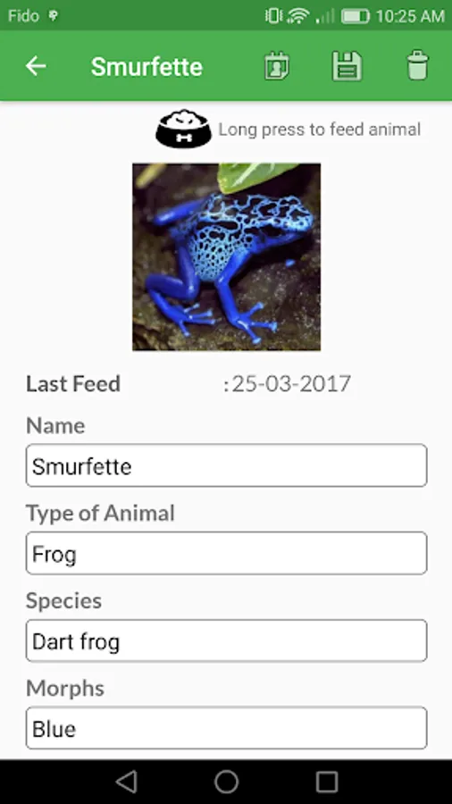 Upload pictures of your animals, develop specific feed and care intervals for each snake, lizard, frog or any other pet animal allowing for better overall care for them and less stress for you!