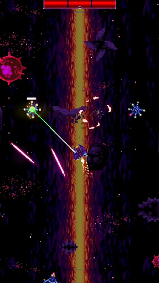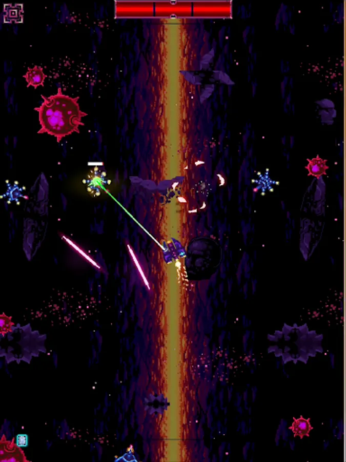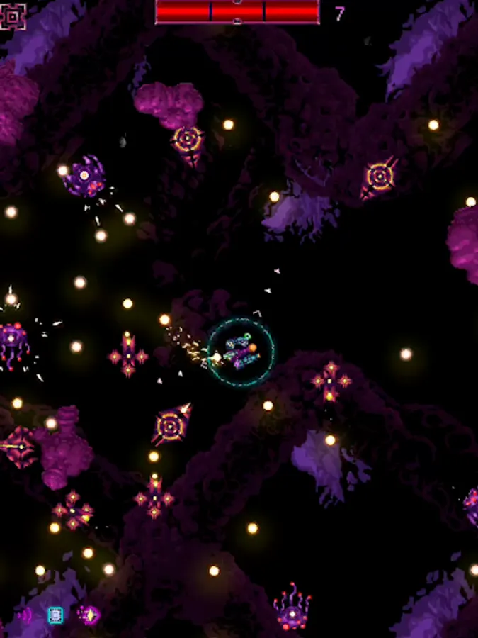 Designed for short, energetic sessions with a one-touch control scheme. There are over 100 otherworldly weapons and skills to discover, 1000s of meaningfully different ship combinations to create, and hundreds of enemy types to face down.