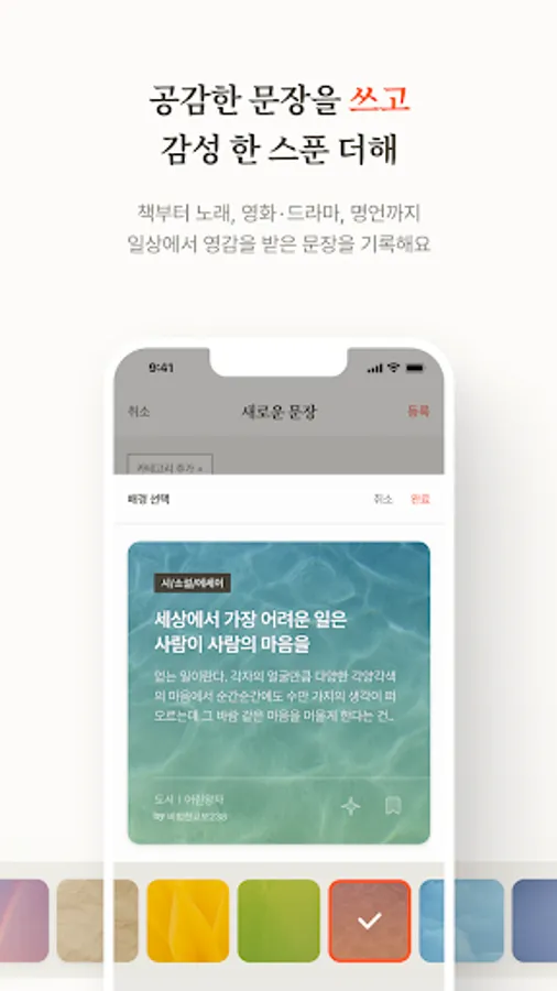 - You can create a sentence card by freely selecting a background image that matches the sentence that inspired you.