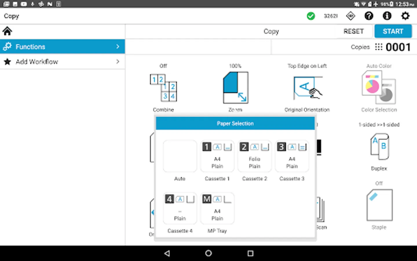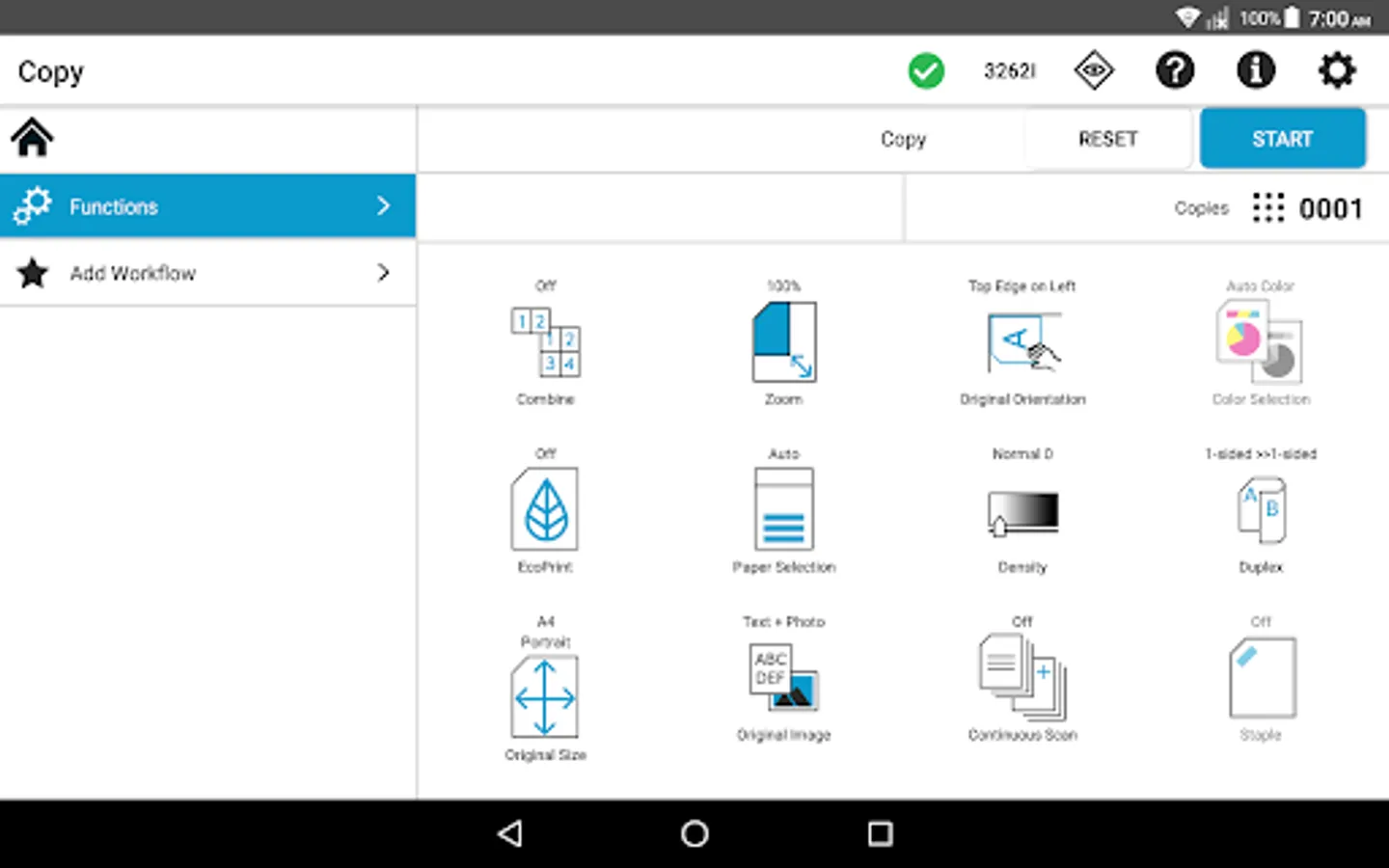 • Save your Copy, Send, or Print Box settings as a workflow for future use