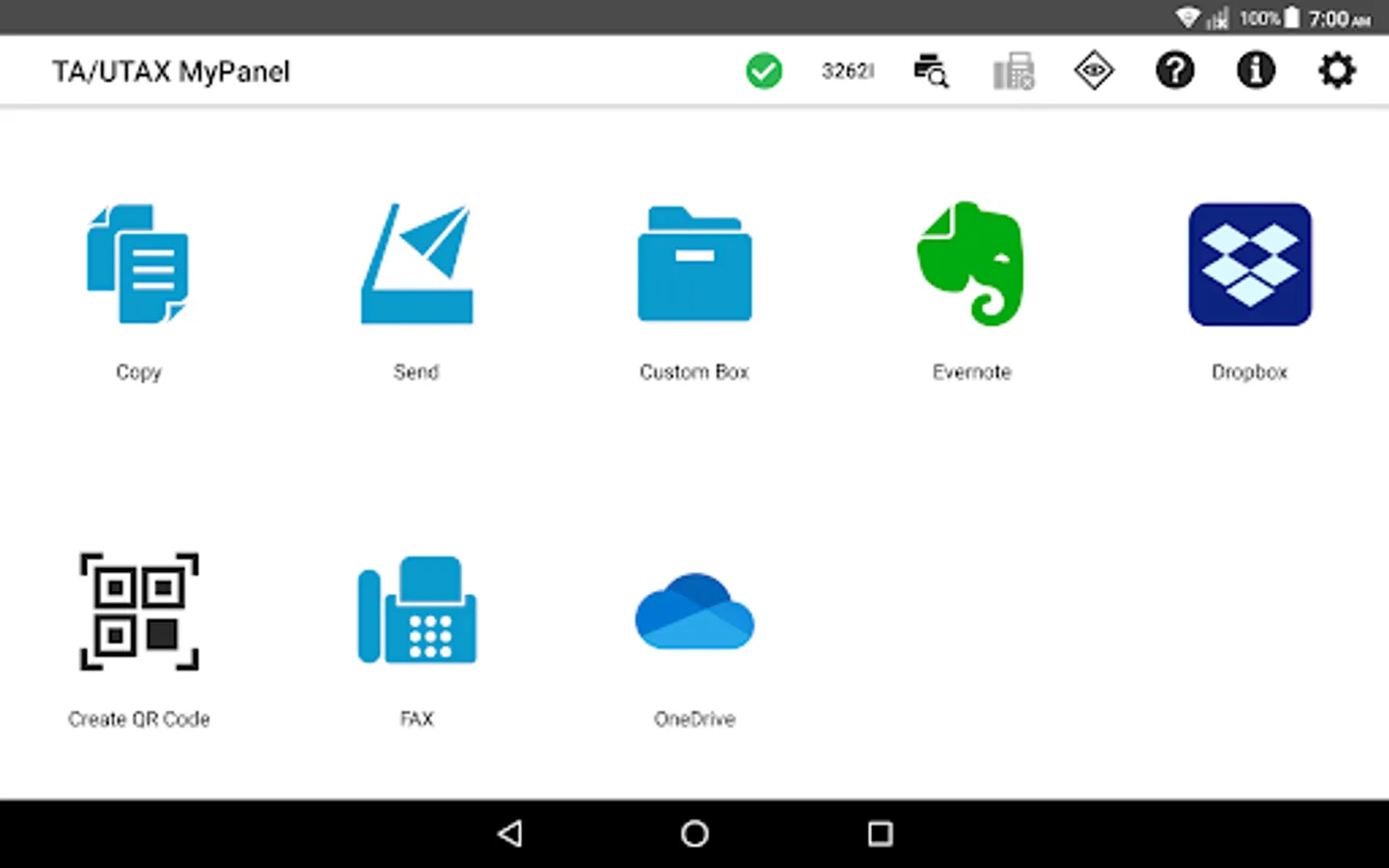 With the MyPanel app, you can use your Android device to access print and imaging features for supported TA/UTAX printing devices and MFPs. When connected, you can do the following: