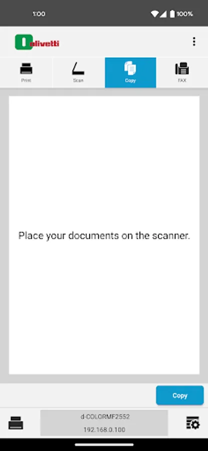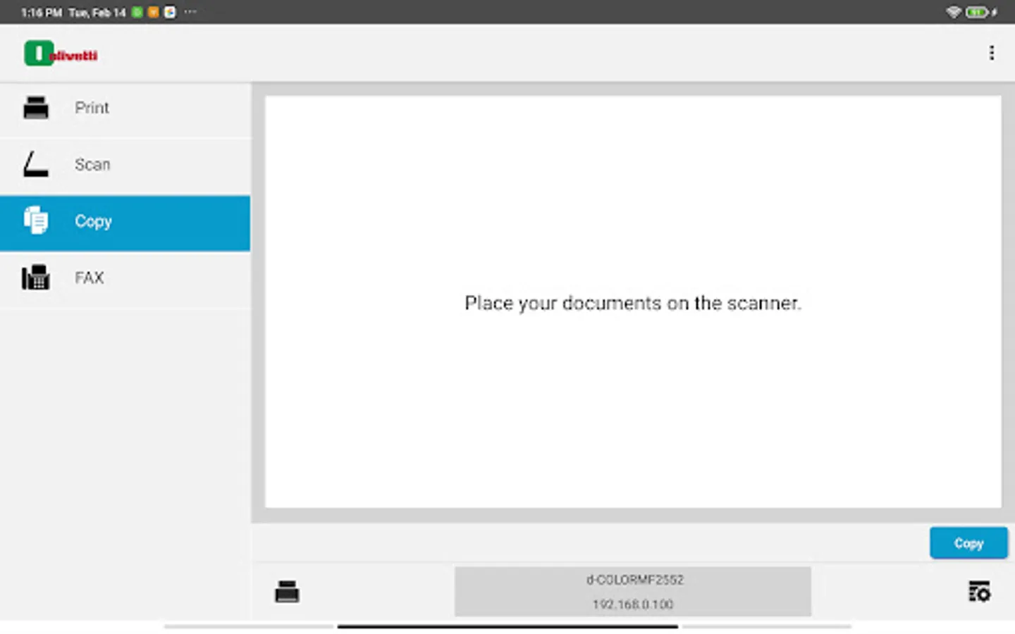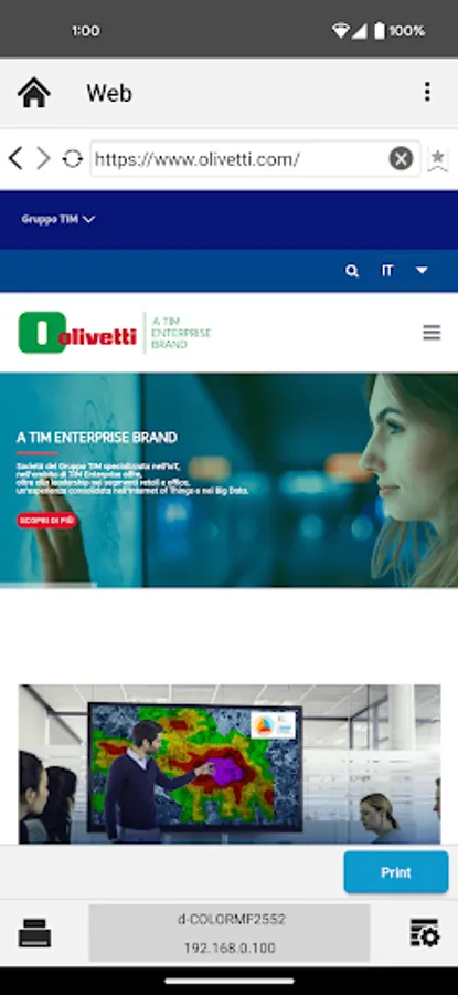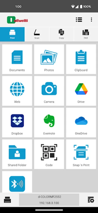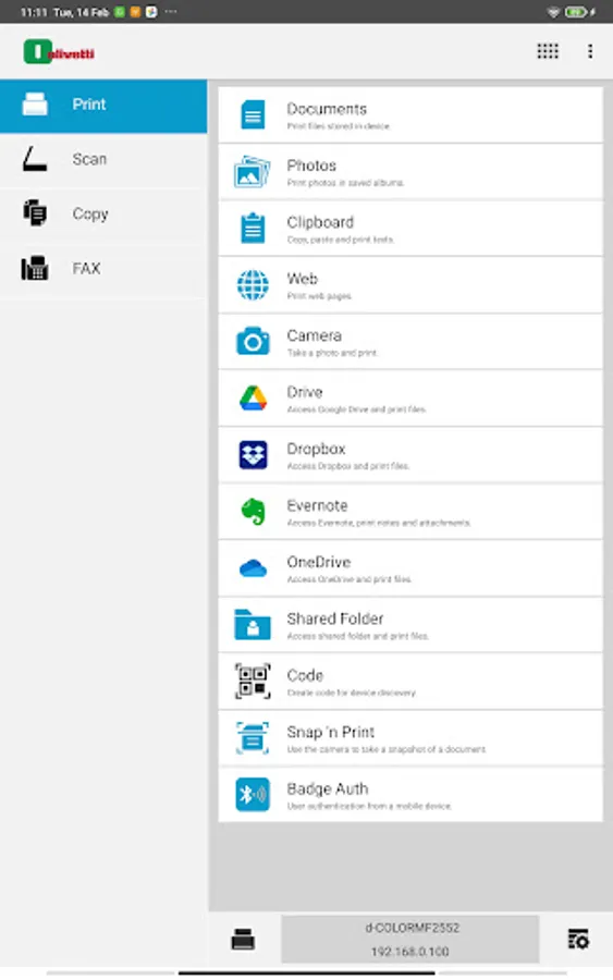 With the Mobile Print app, you can use your Android mobile device to discover compatible Olivetti printing devices on your local Wi-Fi network. If supported by your printing device, Wi-Fi Direct lets you connect directly to a printing device without a local Wi-Fi network. When connected, you can do the following: