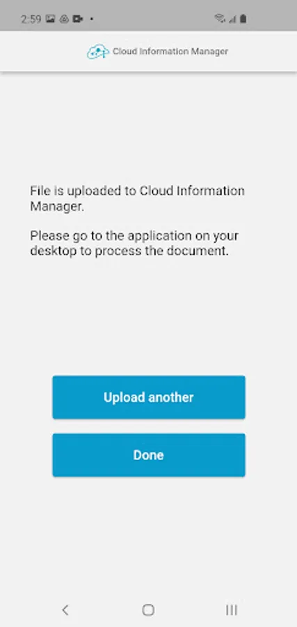 Once uploaded from the app, your uploaded files can then be indexed and archived for easy searching and retrieval in Cloud Information Manager.