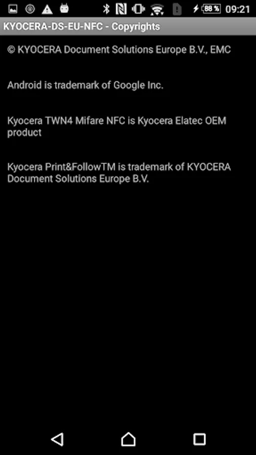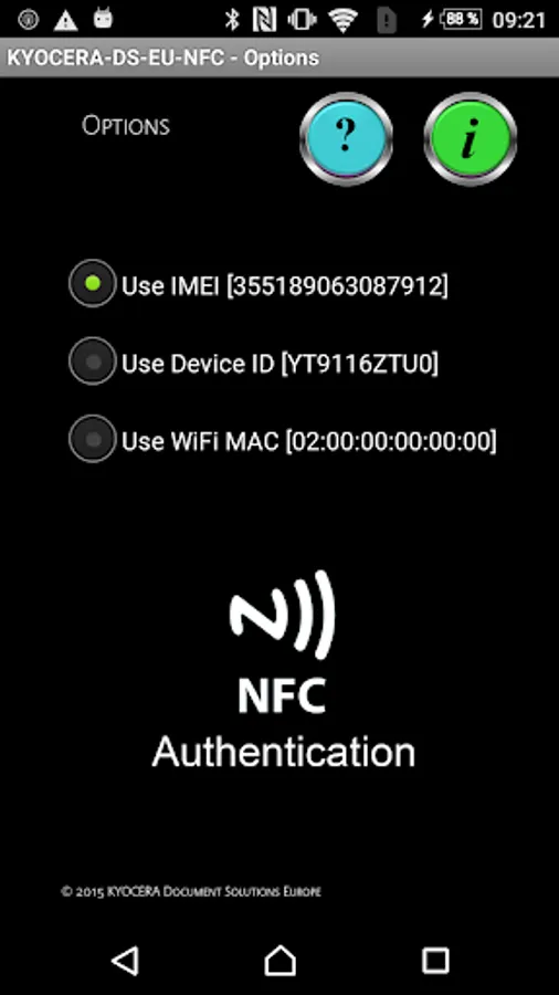The Kyocera NFC app enables ELATEC readers to send and receive unique data for identification (IMEI / Devie ID / WiFi MAC).