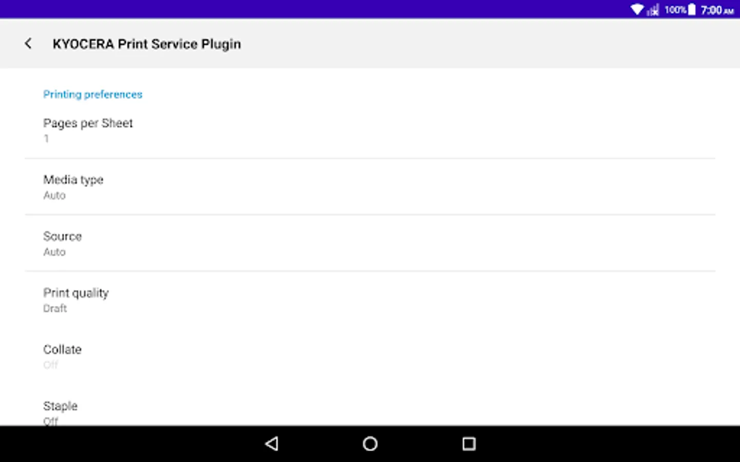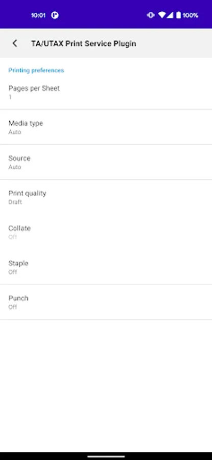 TA/UTAX Print Service Plugin allows printing from your Android device version v4.4 and later without the use of additional printer drivers. Print PDF, photos, documents, web pages, mail and other file formats from any applications that support Print. To check if the Print option is available, tap the overflow icon in the application.