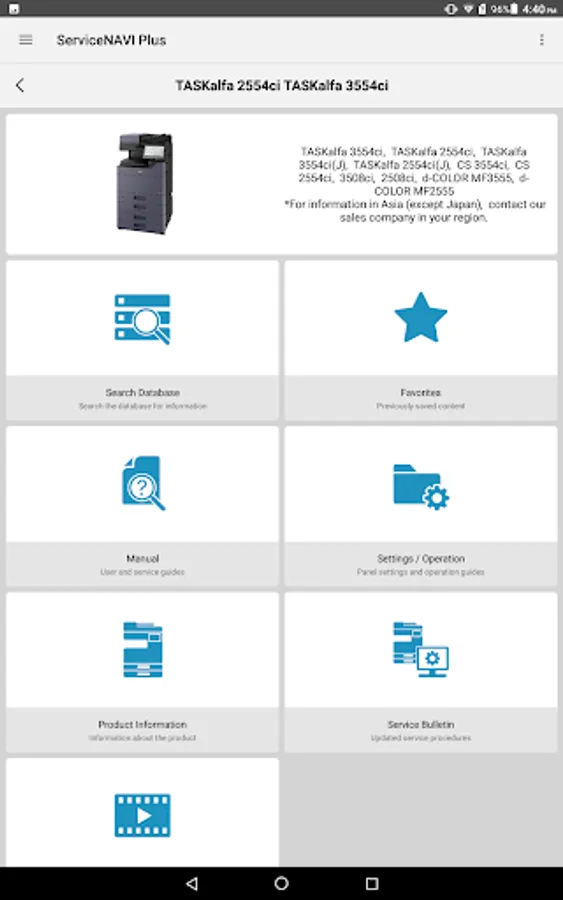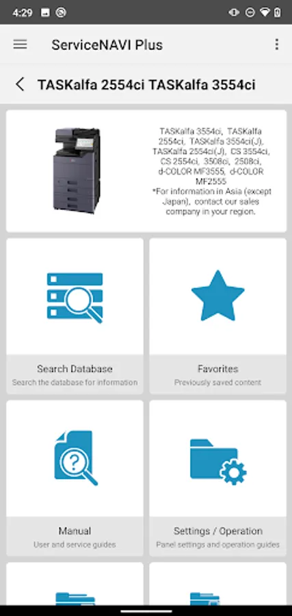 ServiceNAVI Plus is an app to assist the service technicians how to fix the device issues arisen on the KYOCERA MFP models, and also reduce the service time at the customer site.