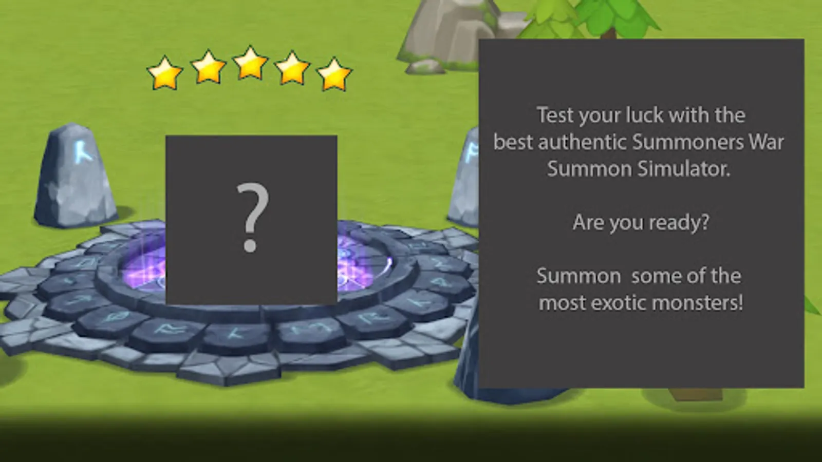 Disclaimer: Summon Simulator for Summoners War has no connections with Com2uS. Monsters summoned in Summon Simulator for Summoners War cannot be used or transferred to your monster inventory in the official Summoners War: Sky Arena game made by Com2uS.