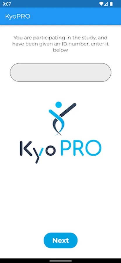 KyoPRO is an ePRO (electronic patient-reported outcome) application to be used in clinical trials. Only users with a study code can access the KyoPRO application. Please contact your clinical investigators for your study code. The user should be able to read and handle a mobile phone. It is recommended that a health care professional assists in software installation. The use of the application by minors is possible. For young children adults are instructed to supervise. To ensure working with the most recent version of the application, do not switch off automatic updates during use of the KyoPRO application.