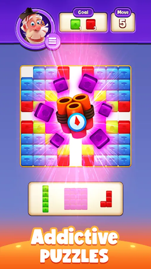 Match blocks to complete rows and columns to get them removed. Keep removing blocks to achieve your targeted colored blocks.