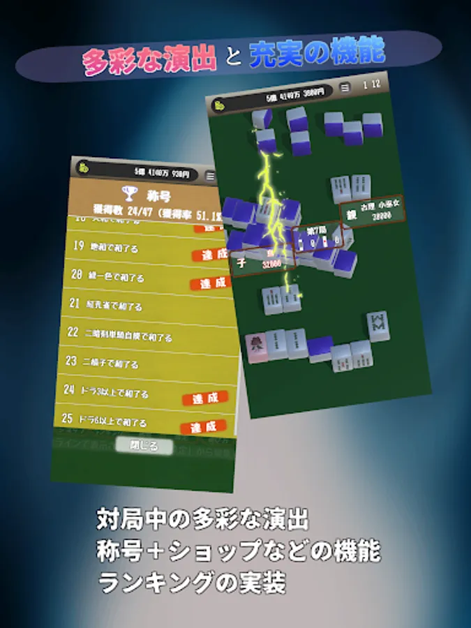 ・ It is recommended for those who want to play mahjong quickly, those who want to play irregular mahjong, and those who kill time because the time is short.