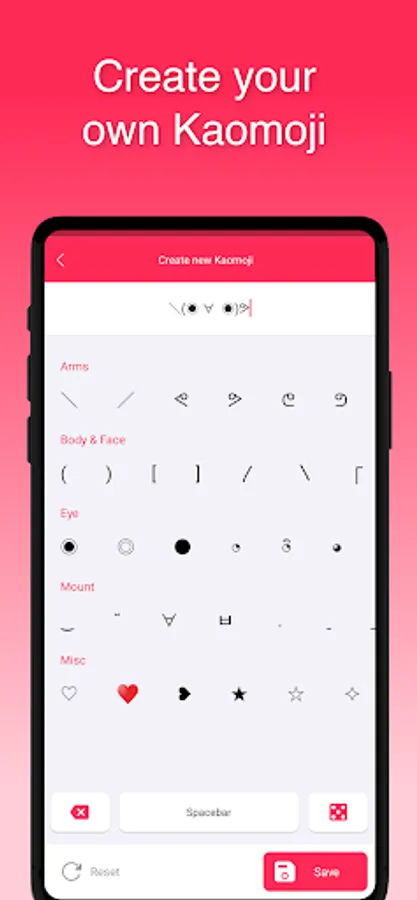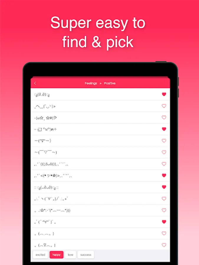 Choose Kaomojis that you like and send it to your friend to surprise them. You can also create your own Kaomojis easily with your creativity. Don't forget to mark (love) which Kaomojis you like to easily use them later. And sync your data oftenly.