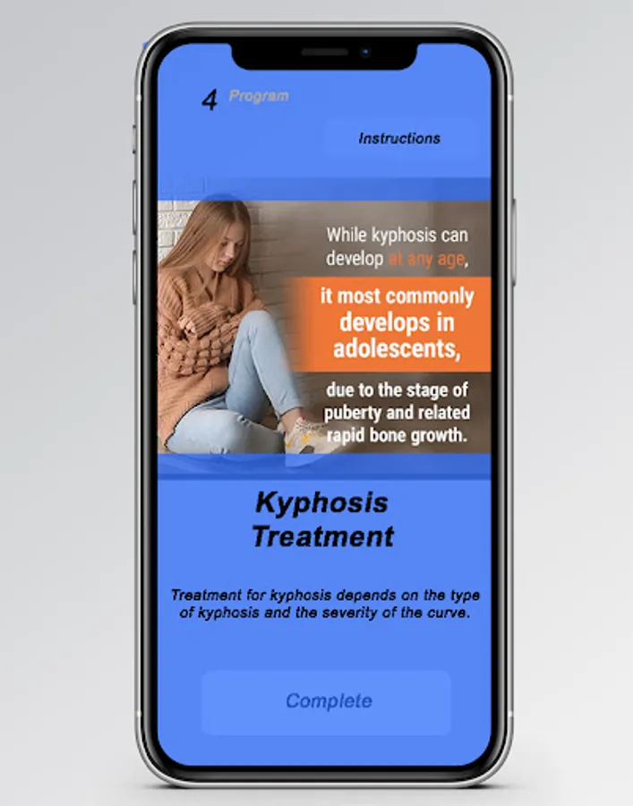Install now and Practise kyphosis with our mobile app. Exercises to help you improve your posture. Exercises that can be done to correct kyphosis and round backs.