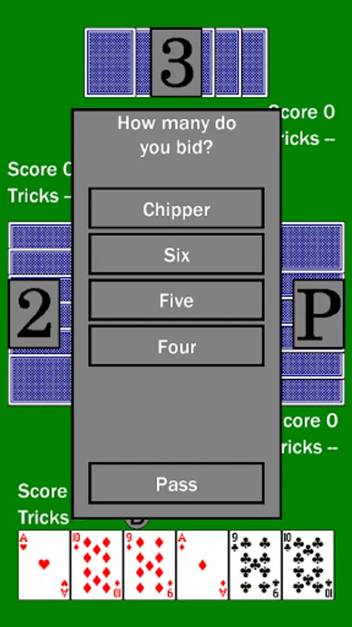 Chipper is a card game played in and around West Central Wisconsin. If you are familiar with Euchre or any trick-taking card game it should be an easy game to pick up. Play against 3 computer players to hone your skills and become a better Chipper player.
