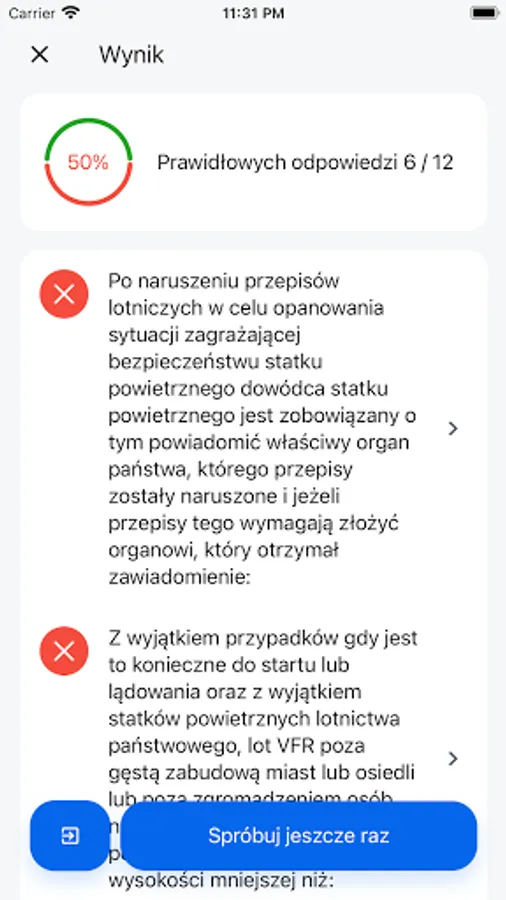 7. Powtórz pytania, na które udzieliłeś złej odpowiedzi w trybie "Praca nad błędami"